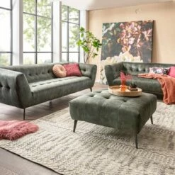 - Polsterung aus Polyätherschaum und Polstervlies, Unterfederung durch Bonell-Federkern, dauerelastische Stahlwellenfedern, Polstergurte