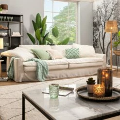 Mit dem Megasofa Seventies hat DAHEIM ein Bigsofa der Extraklasse auf den Markt gebracht. Durch die Polsterung aus hochwertigem PUR-Schaum und Watteflies auf komfortabler Nosag-Unterfederung ist das Sitzmöbel ein Quell der Bequemlichkeit für anspruchsvolle Genießer außergewöhnlichen Sitzkomforts. Dank des echten Rückens benötigen Sie außerdem keine freie Wand und können das Megasofa Seventies mittig im Wohnbereich aufstellen.