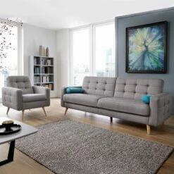 - Polsterung aus PUR-Schaum und einem Inlett mit Schaustoffsticks und Wattevlies, Unterfederung durch dauerelastische Stahlwellenfedern
