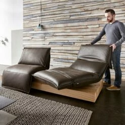 - Bezug aus Leder (Movini) in silber, Füße Kunststoffgleiter